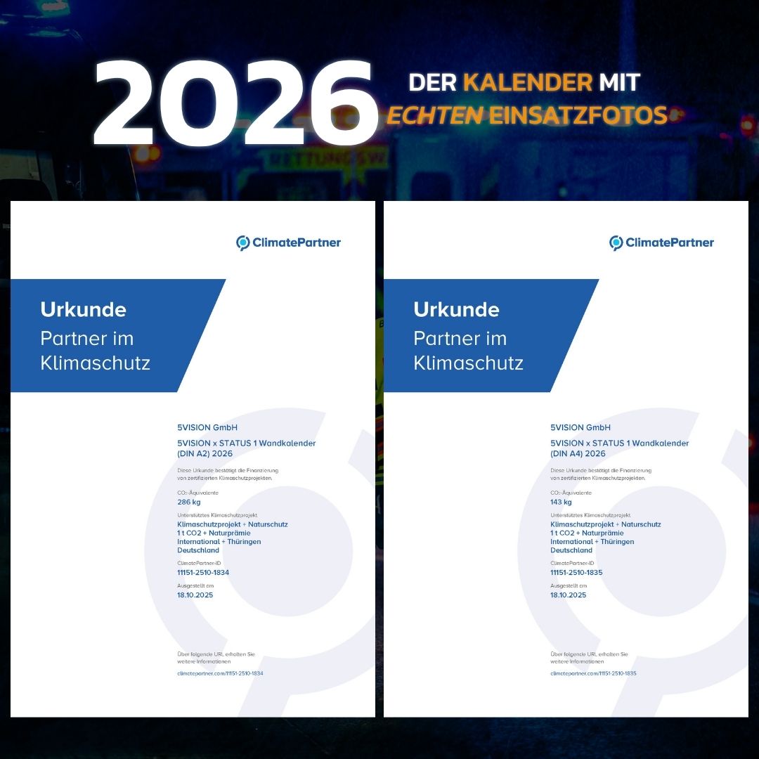 5VISION x STATUS 1 – Kalender 2026 - Echte Einsätze von Feuerwehr, Polizei & Rettungsdienst