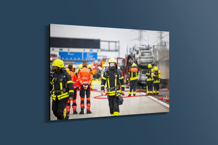 Einsatz nach Lkw-Brand Feuerwehr und Rettungsdienst auf der A3 (Alu-Dibond)
