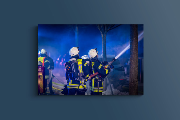 Feuerwehr bekämpft Wohnungsbrand mit Drehleiter (Acryl)