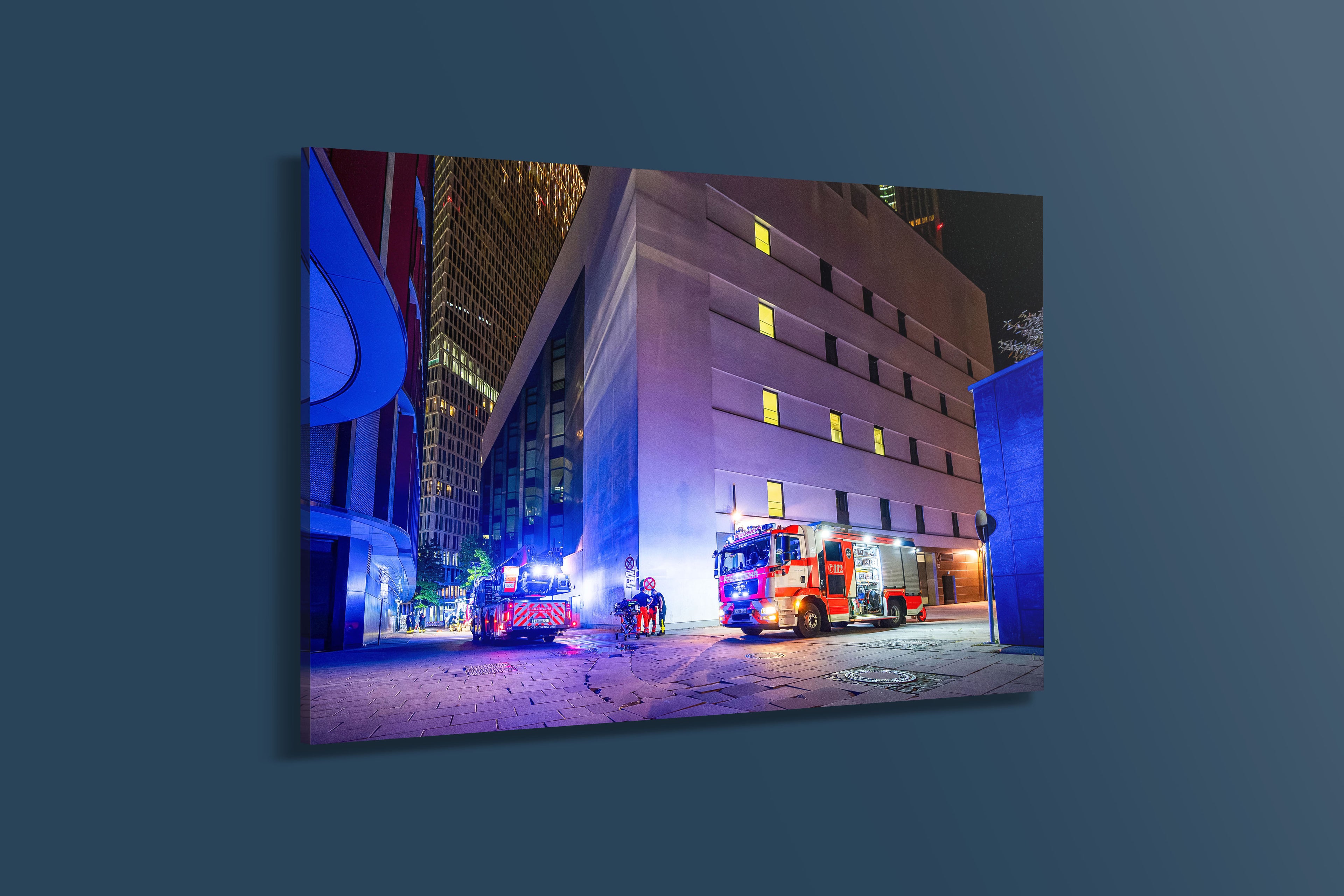Feuerwehr-Einsatz nachts am Skyline Plaza Frankfurt (Acryl)
