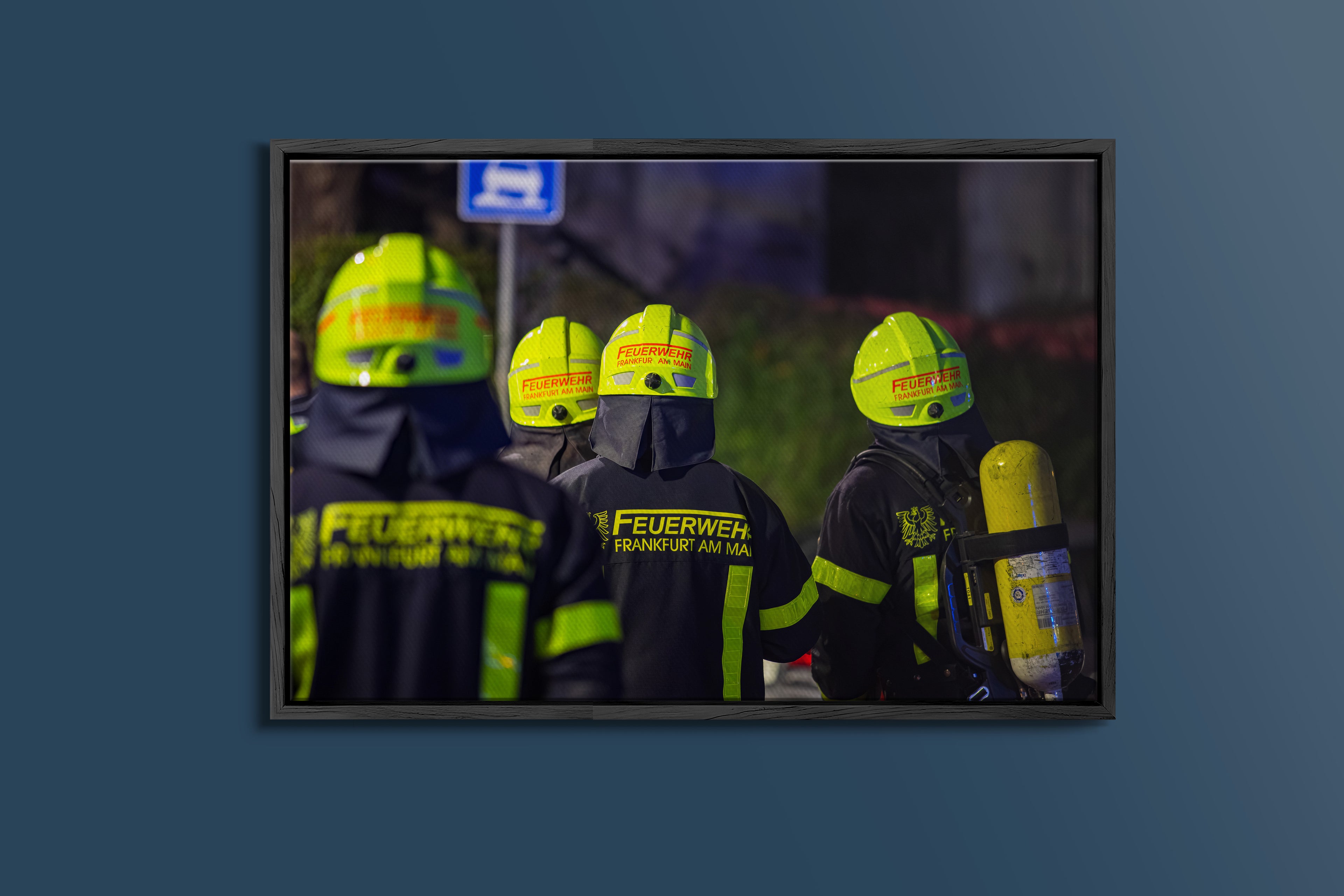 Feuerwehr Frankfurt – nächtlicher Brandeinsatz (Gerahmtes Bild)