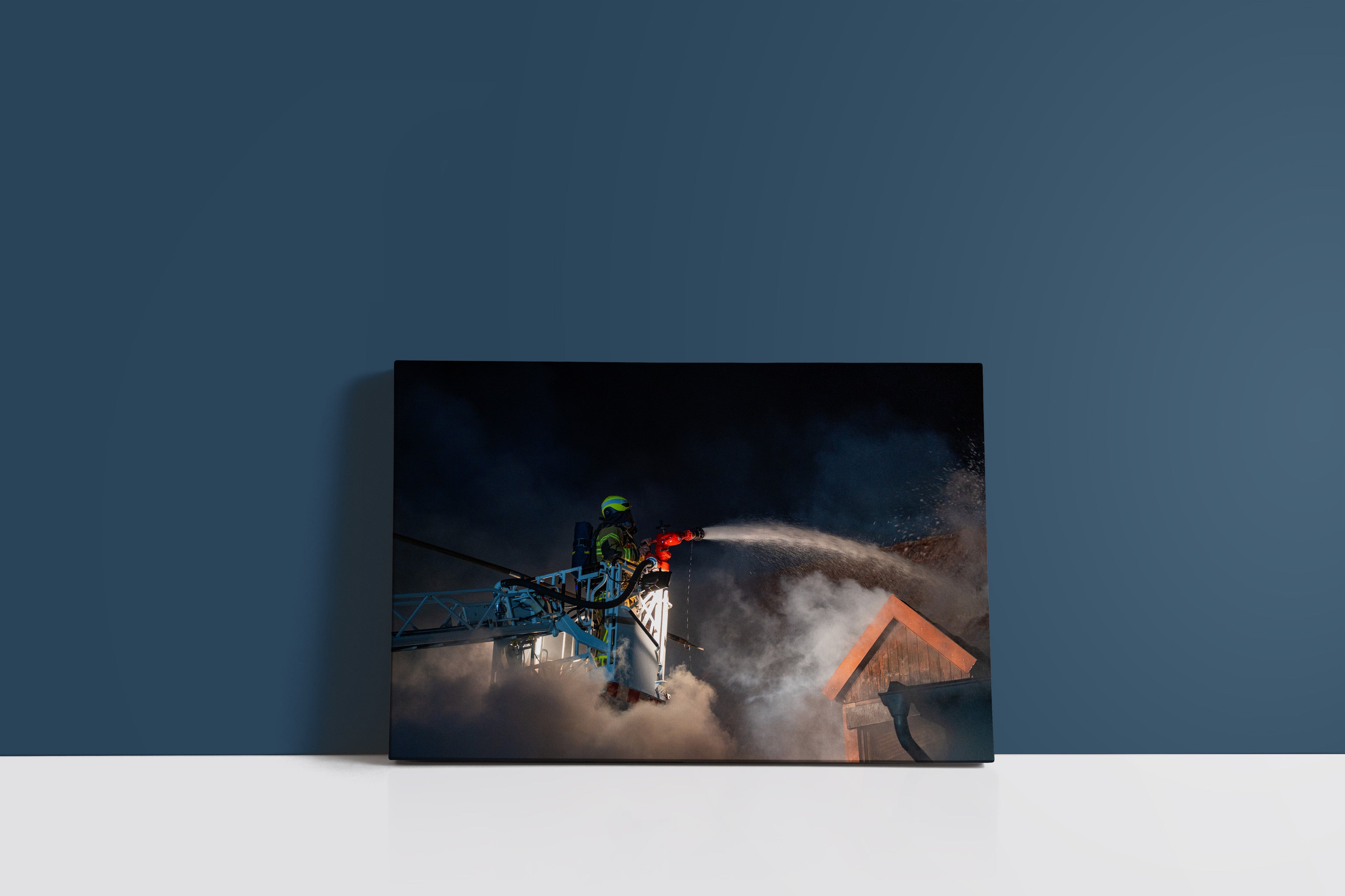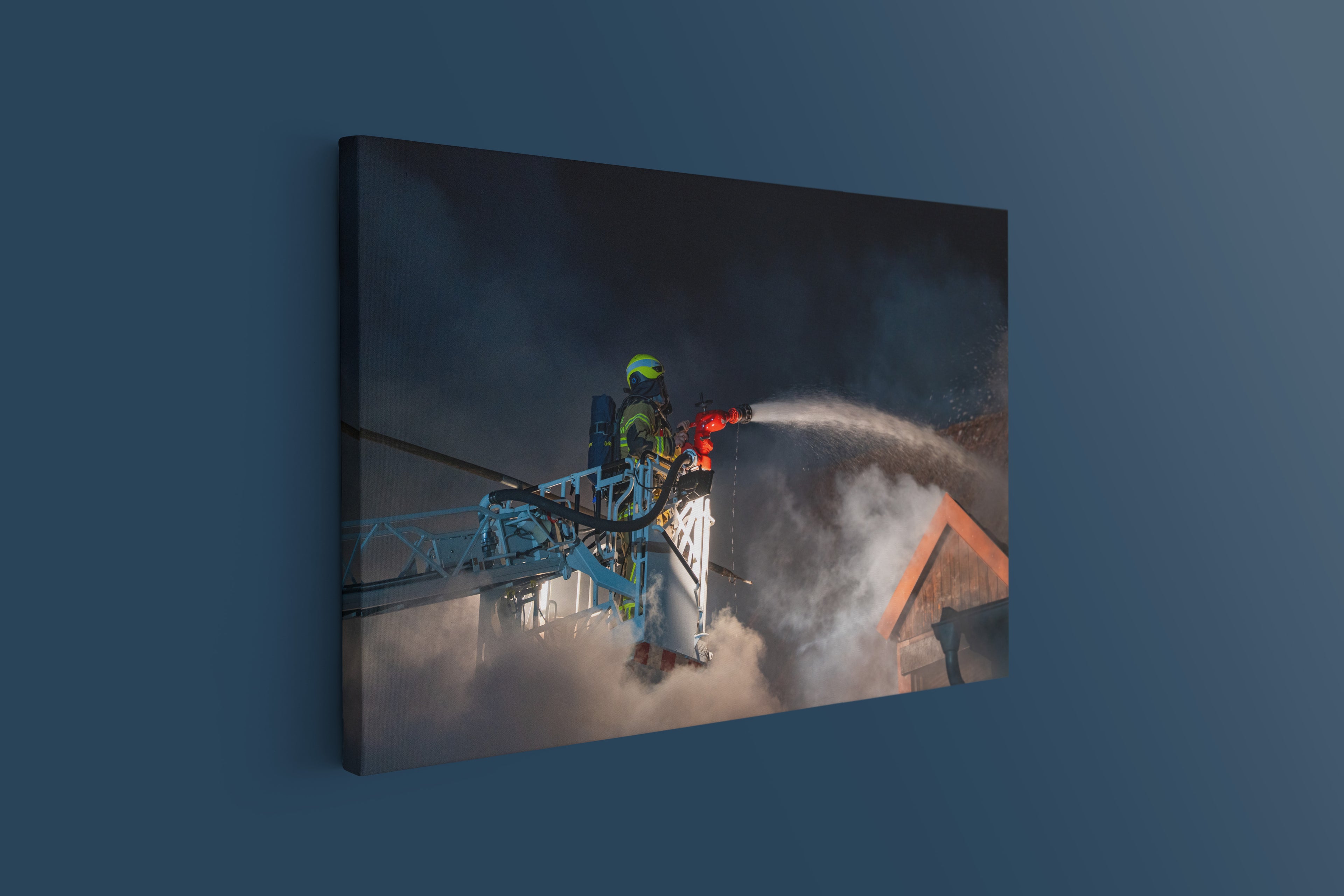 Feuerwehr-Großeinsatz bei Nacht in Schriesheim (Leinwand)