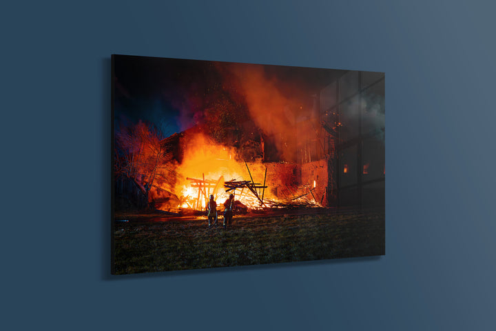 Feuerwehr kämpft gegen Brand in historischem Gebäude (Alu-Dibond)