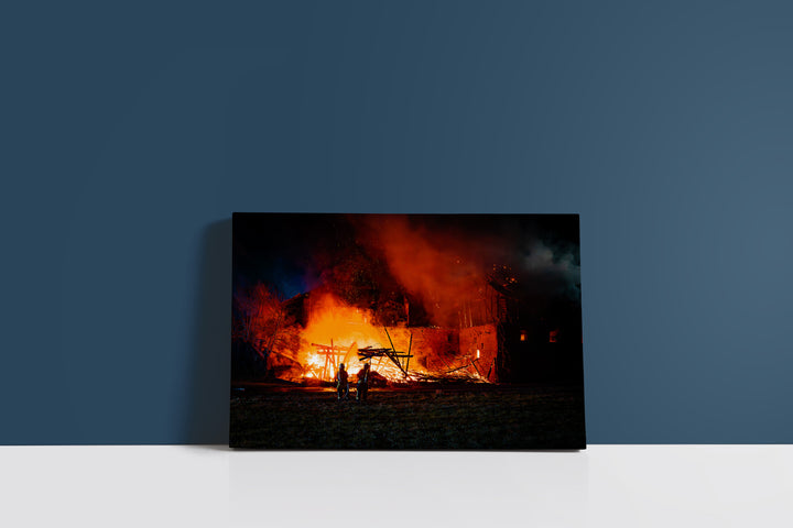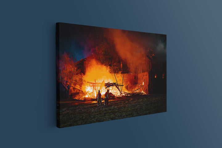 Feuerwehr kämpft gegen Brand in historischem Gebäude (Leinwand)