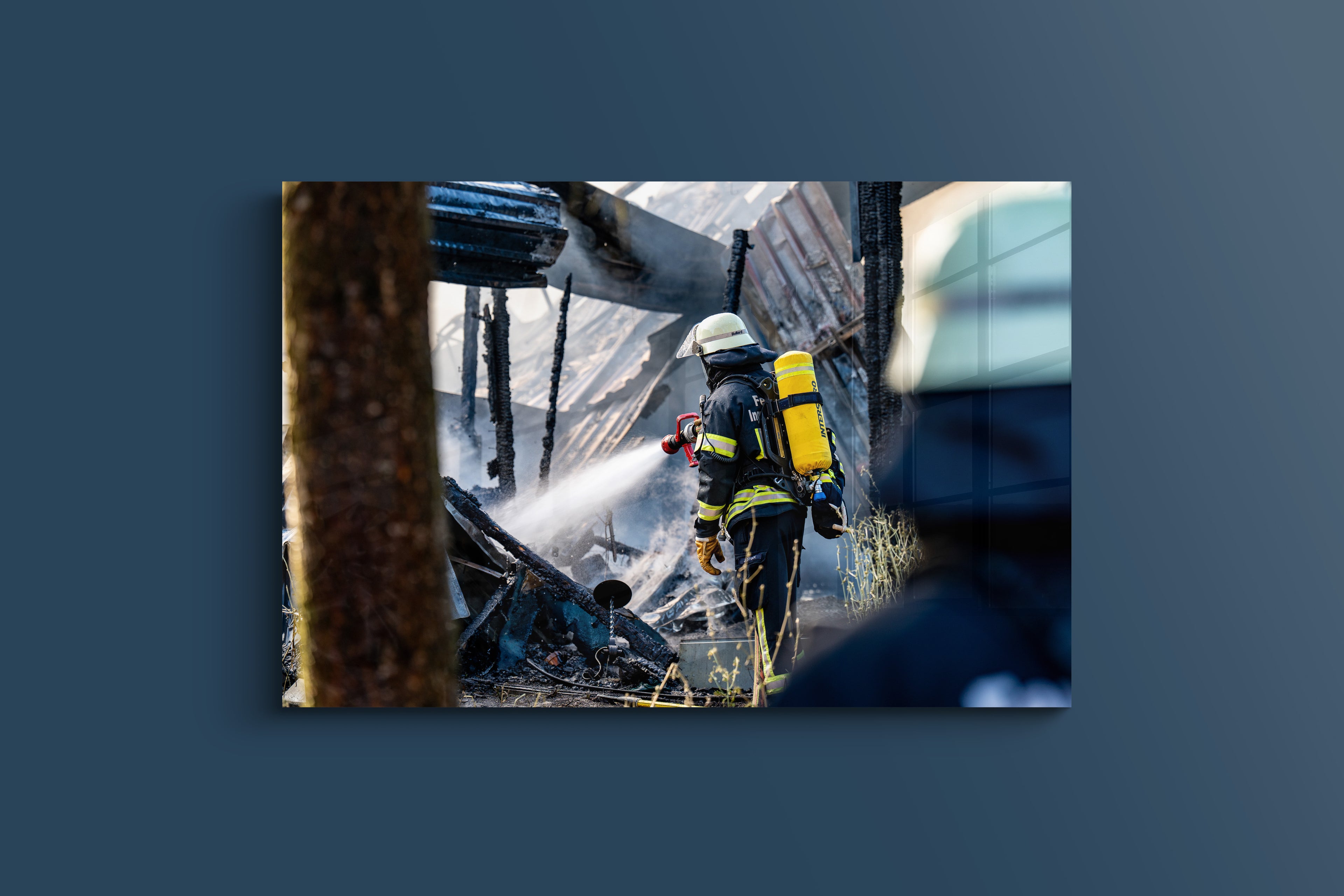 Feuerwehr kämpft gegen Hofbrand in Heidesheim (Alu-Dibond)