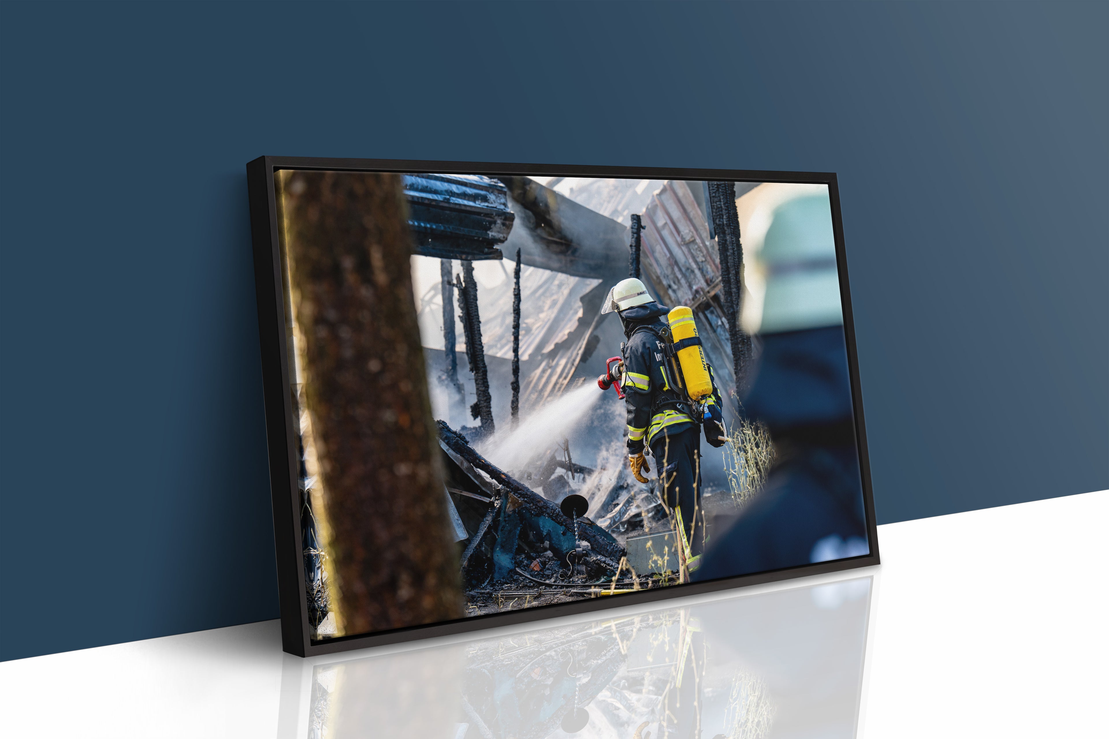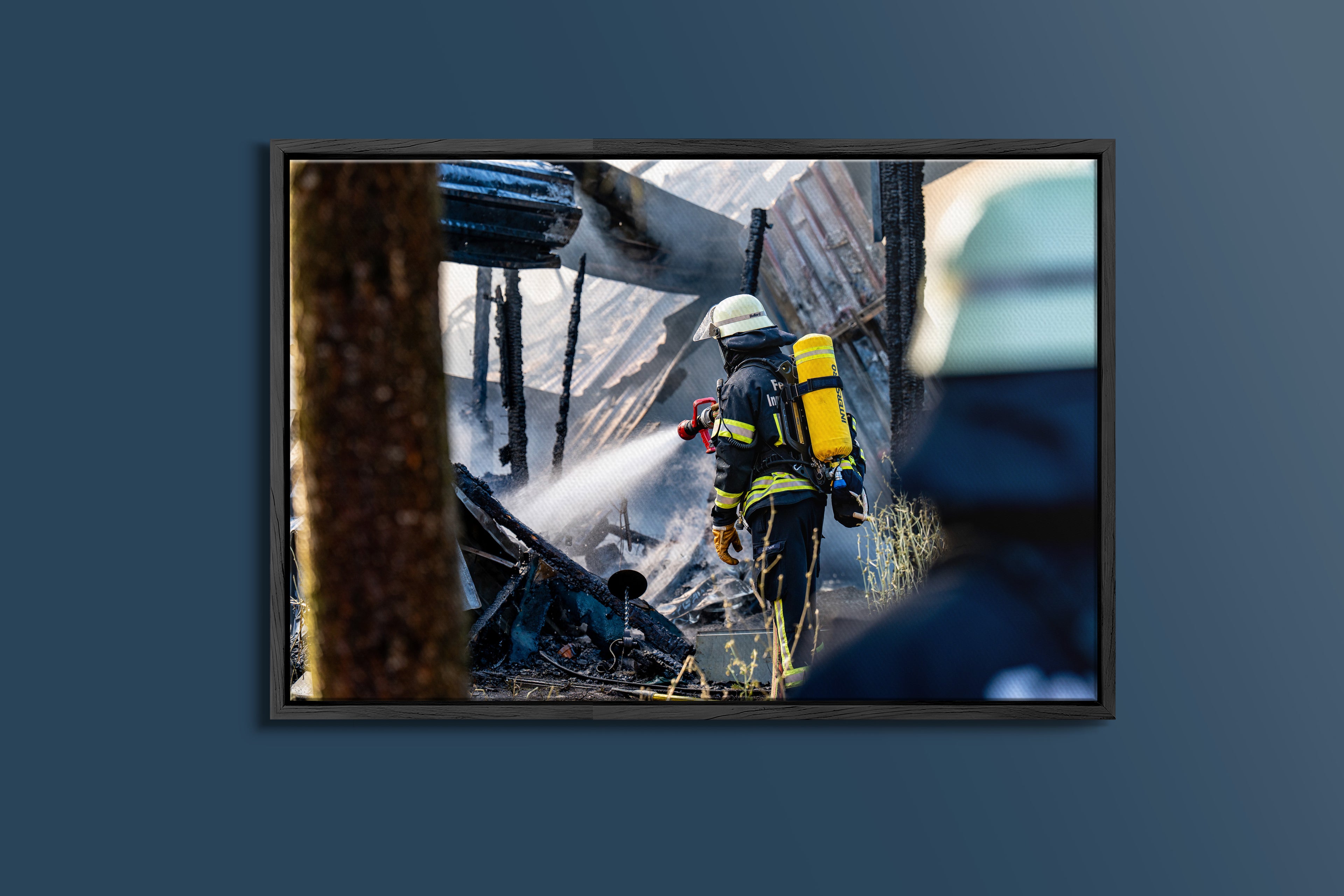 Feuerwehr kämpft gegen Hofbrand in Heidesheim (Gerahmtes Bild)