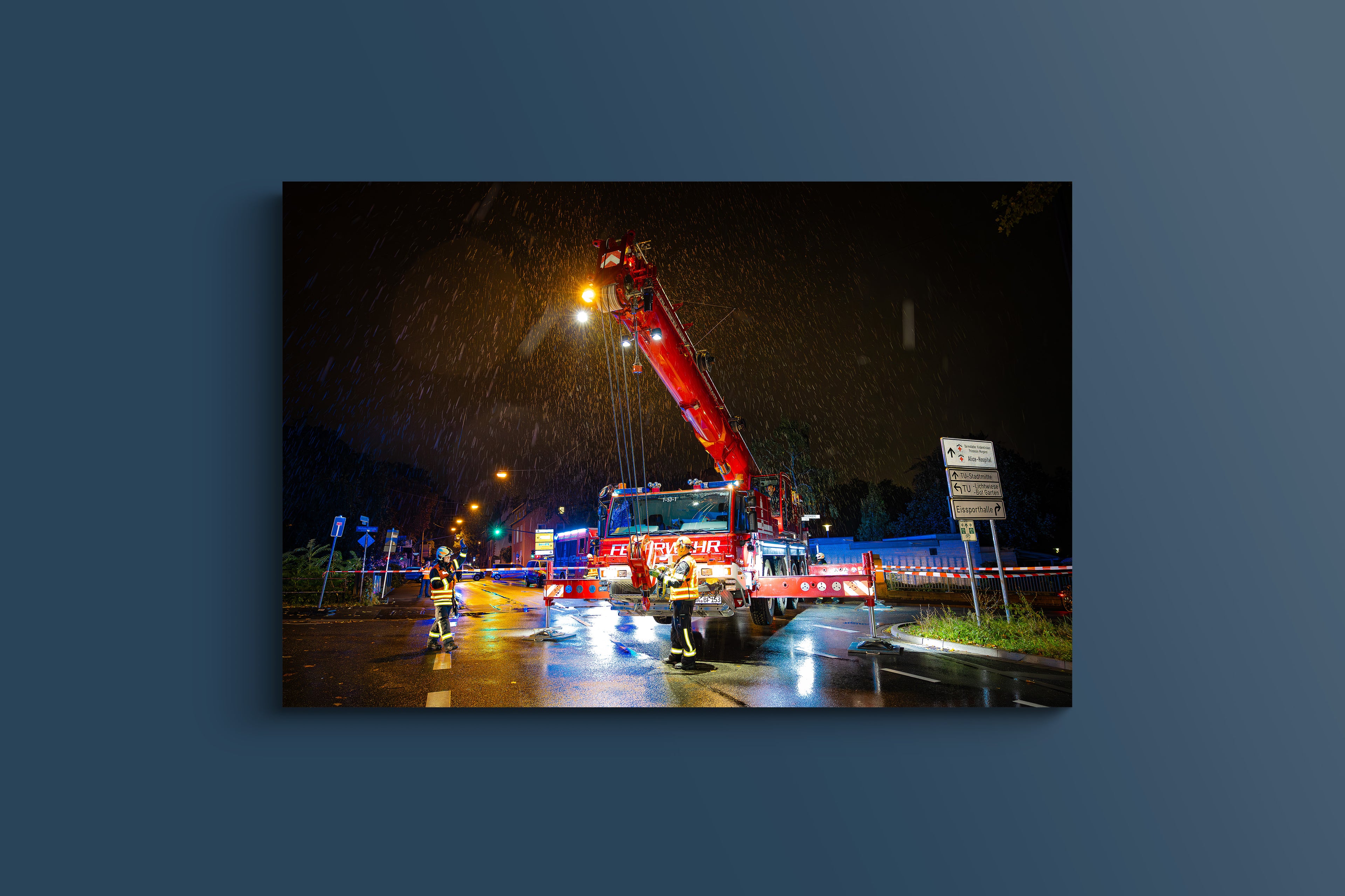 Feuerwehrkran-Nachteinsatz bei Brückenunfall (Acryl)