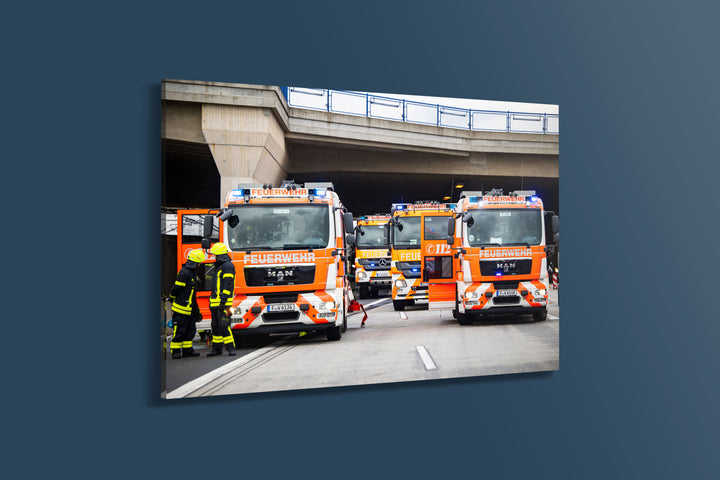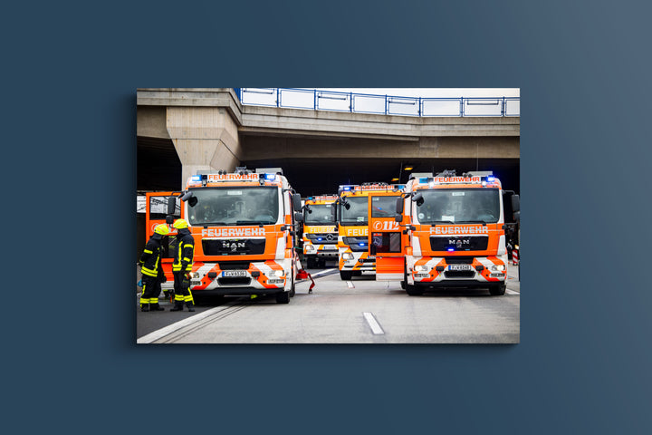 Großbrand an Elektrofahrzeug-Sattelzug auf A3 bei Frankfurt (Acryl)