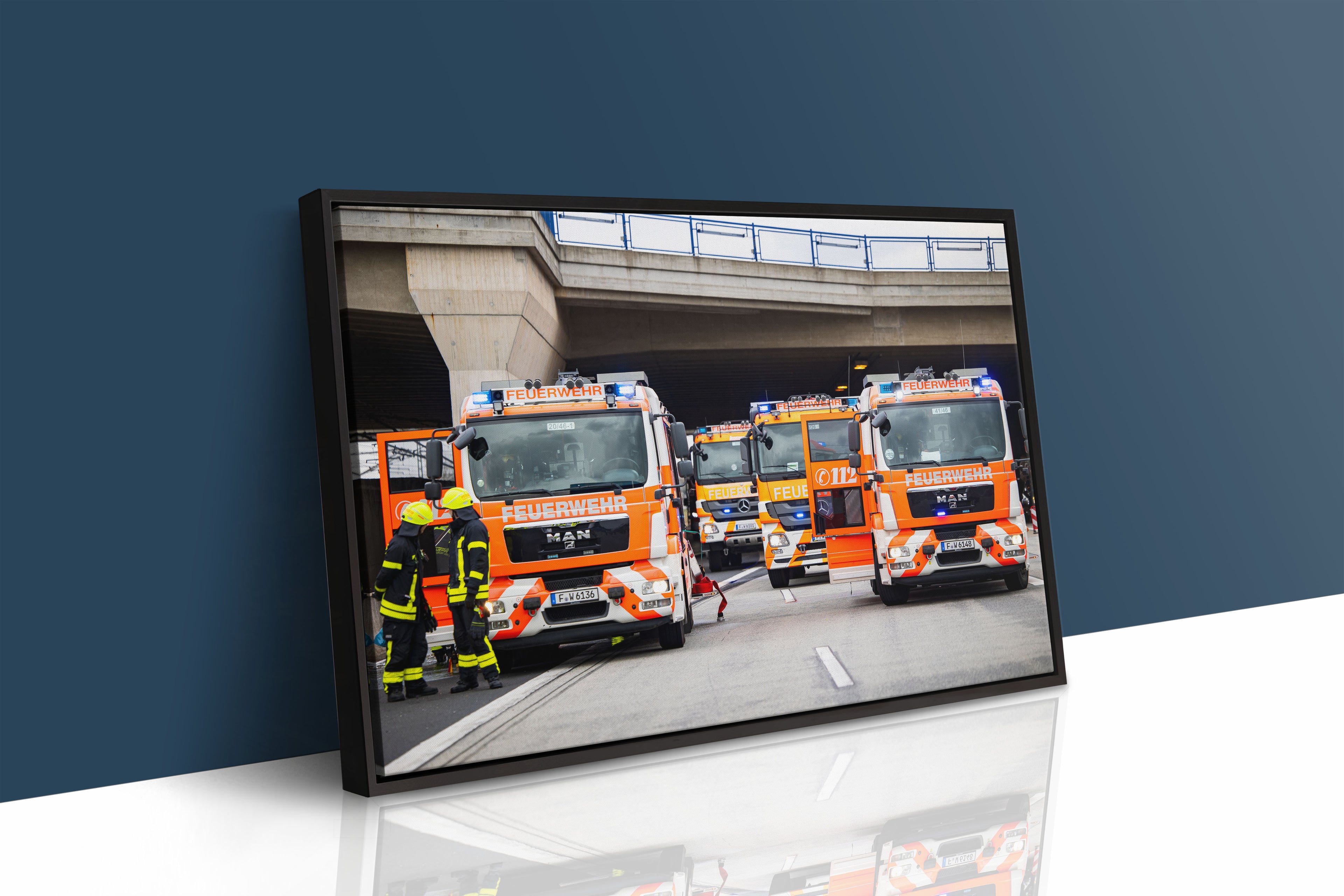 Großbrand an Elektrofahrzeug-Sattelzug auf A3 bei Frankfurt (Gerahmtes Bild)