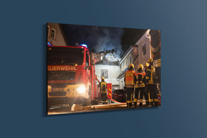 Nächtlicher Wohnhausbrand – Feuerwehr Höchst im Einsatz (Alu-Dibond)