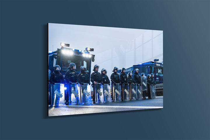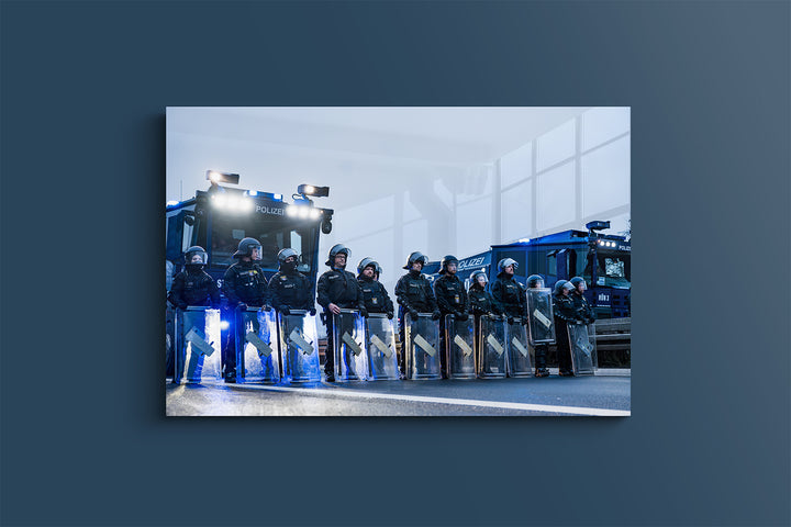Das Motiv bringt die Dynamik und Ernsthaftigkeit großer Lagen an deine Wand – ideal für Dienstzimmer, Büro oder Zuhause von Polizeifans und Einsatzkräften.