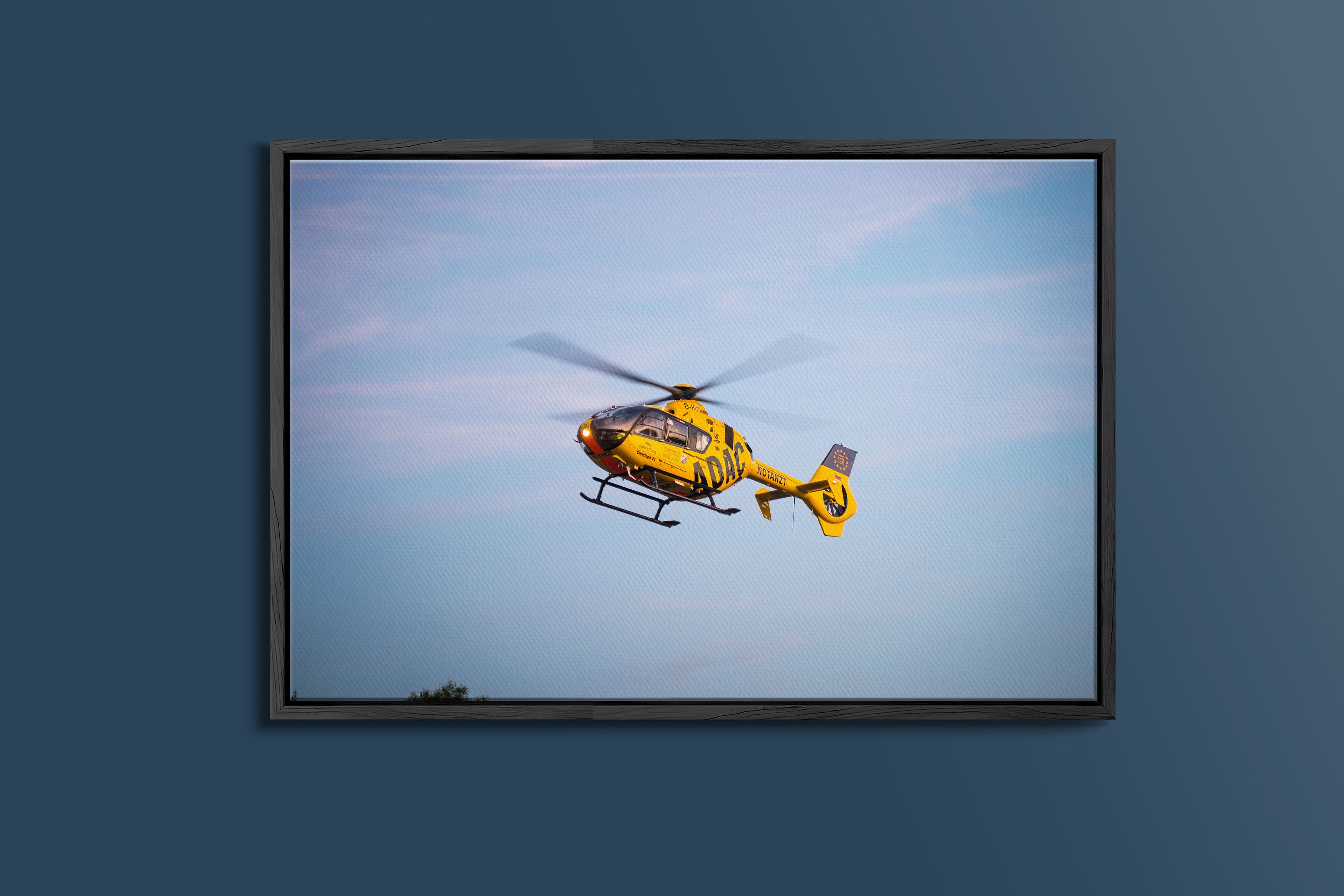 Rettungshubschrauber im Einsatz bei schwerem Unfall (Gerahmtes Bild)