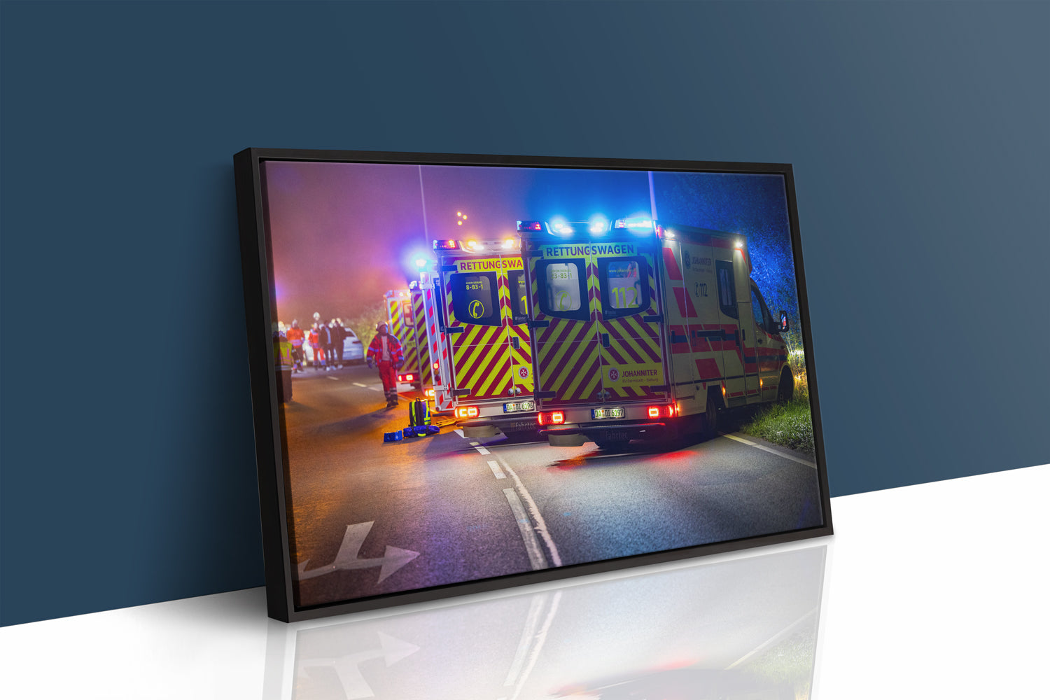 Rettungswagen in der Nacht (Gerahmtes Bild)
