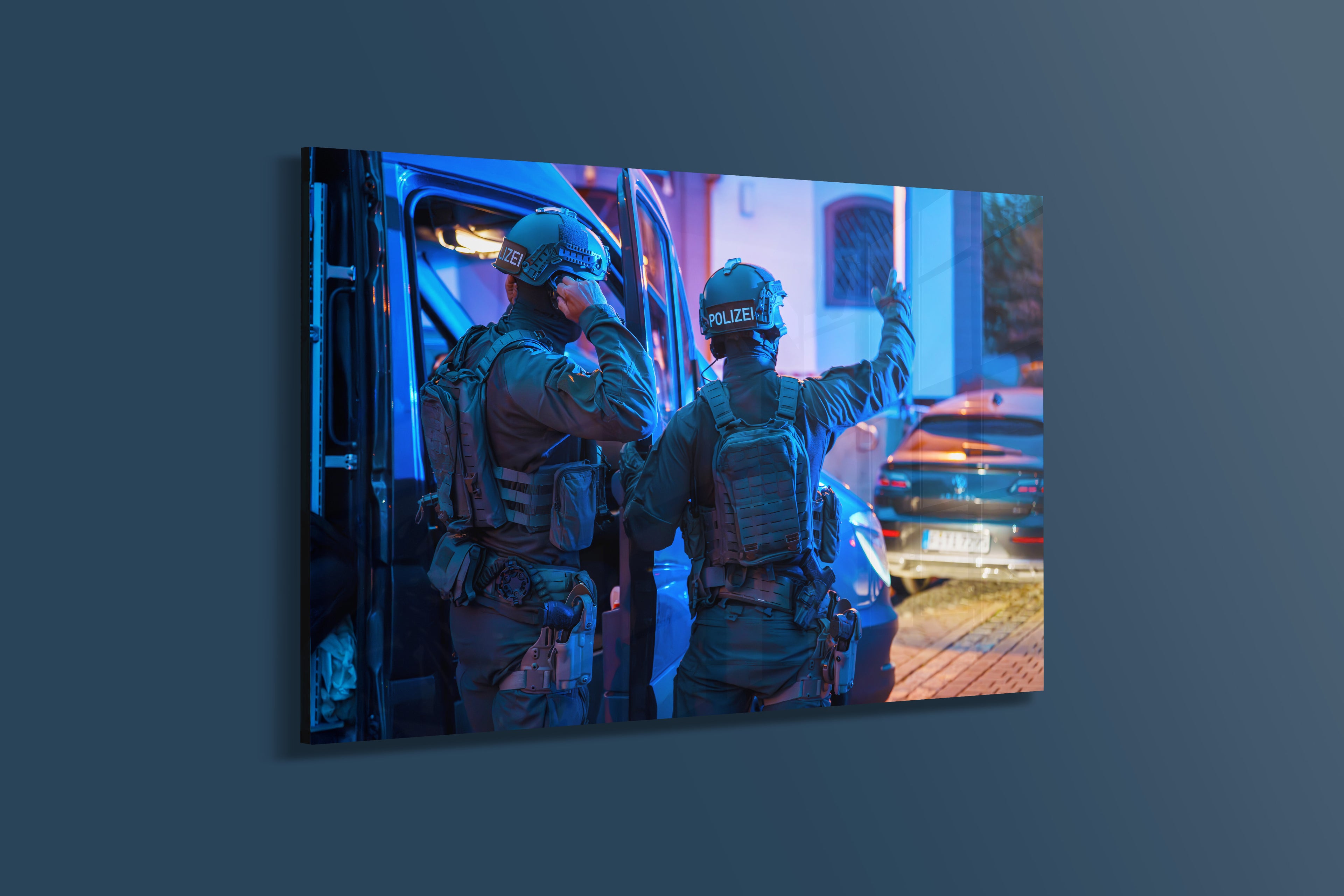 SEK-Einsatz Polizei im abendlichen Viertel (Alu-Dibond)
