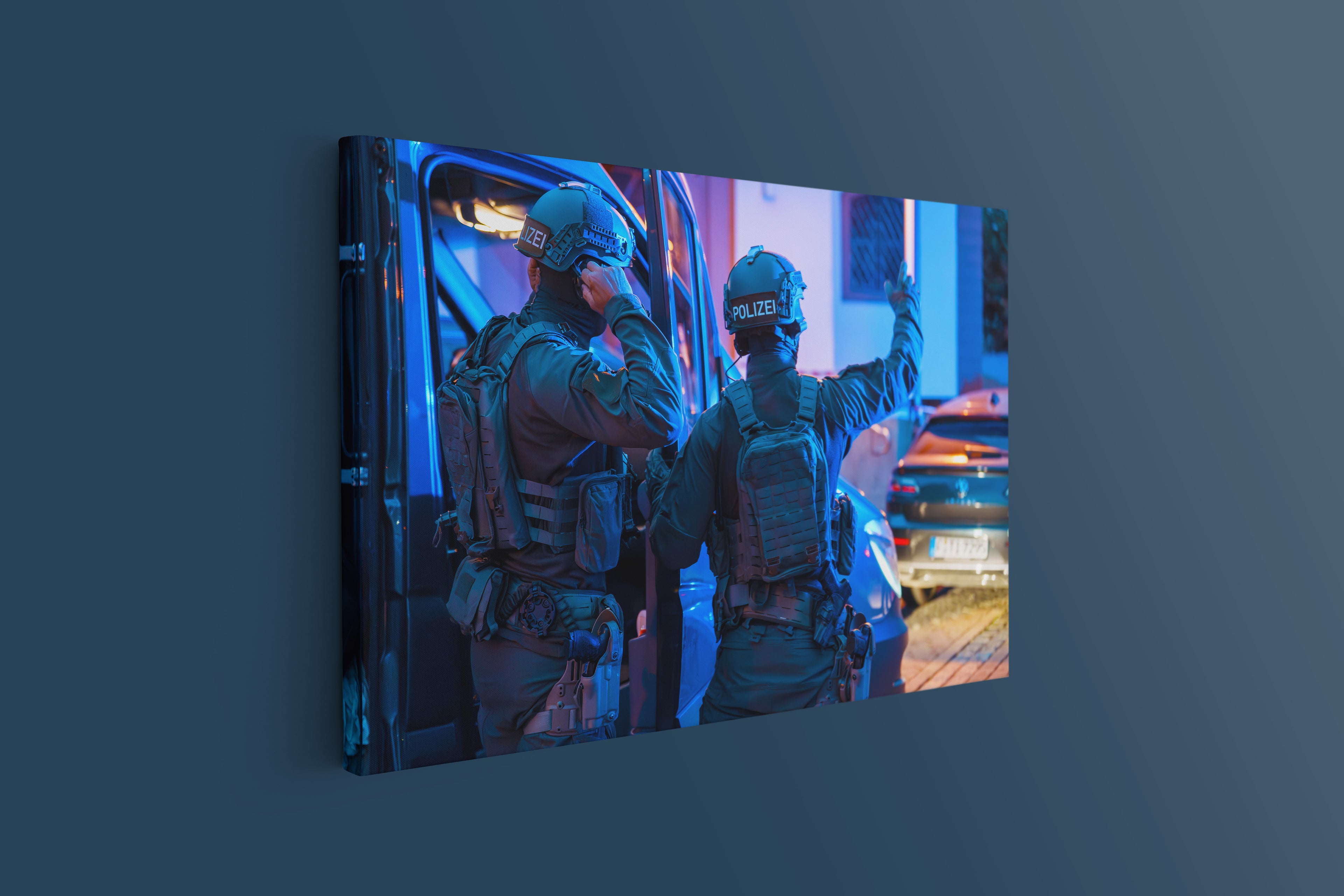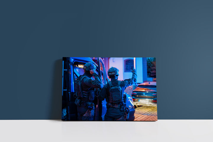SEK-Einsatz Polizei im abendlichen Viertel (Leinwand)
