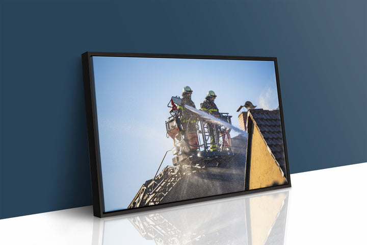 Wohnhausbrand – Einsatz mit Drehleiter (Gerahmtes Bild)