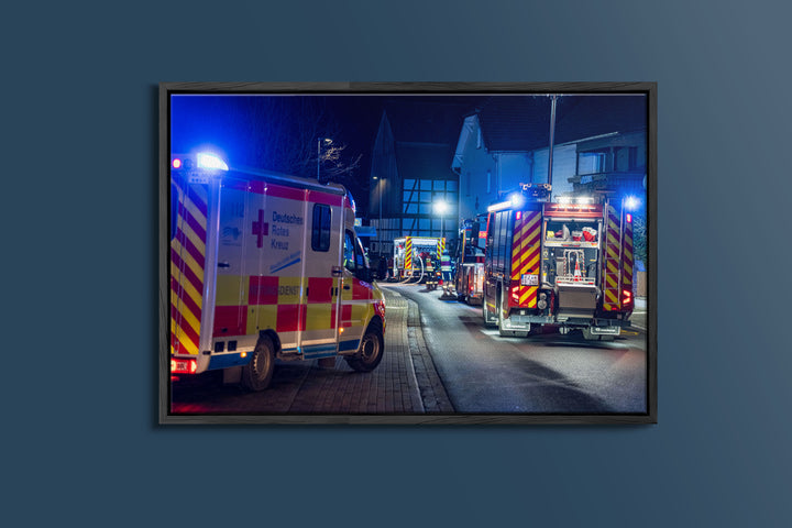 Wohnungsbrand in Fritzlar-Geismar bei Nacht (Gerahmtes Bild)